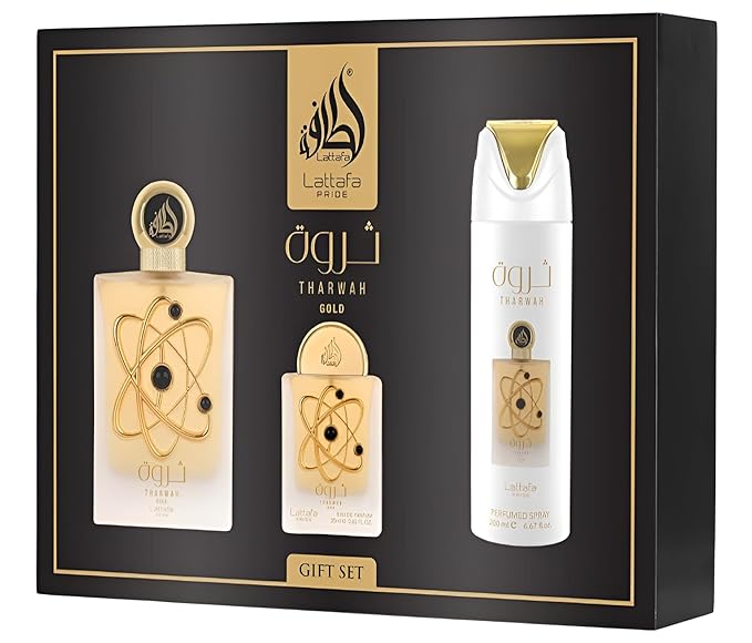 Lattafa Pride Tharwah Gold For Unisex 3 Piece Gift Set